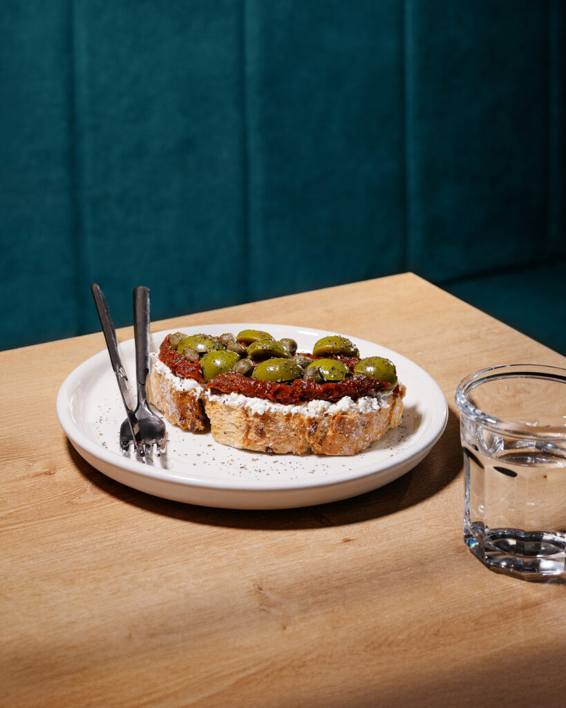 pâine cu ovăz încolțit ricotta roșii uscate măsline capere