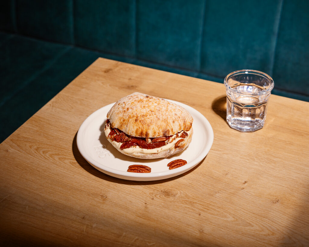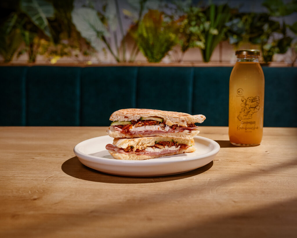 Croissant cu unt, camembert, mortadella și gem de smochine… Crocant, sărat, dulce, totul într-o mușcătură. Alege cald sau rece.