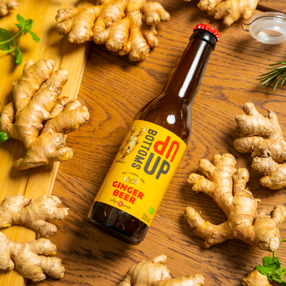 Ginger beer artizanal, spicy și revigorant. Nefiltrată, acidulată și realizată cu 4% suc concentrat de ghimbir, fără alcool.